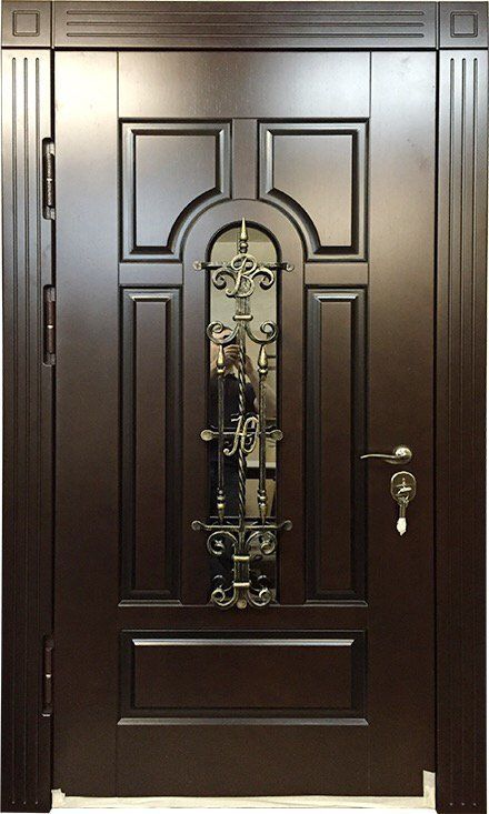 Красивый внешний вид немаловажное, но не самое главное преимущество металлических дверей с элементами ковки. Такие двери еще и очень надежны. Они изготавливаются из холоднокатаной стали толщиной 1,4-2 мм, отделываются массивом, корабельной фанерой, натуральным шпоном или МДФ-панелями, покрытыми виноритом. Установив на нее замки 3 или 4 класса взломостойкости, вы получите дверь, вскрыть которую с помощью грубой силы практически невозможно.